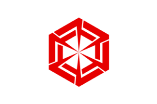 flag has a red city emblem in the center. The city emblem is a stylized katakana