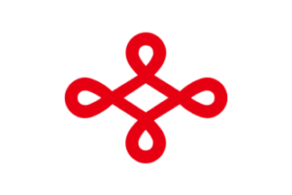 The flag of the former town of Isshiki was white with mark. The town is now, from 2011, part of the city of Nishio.