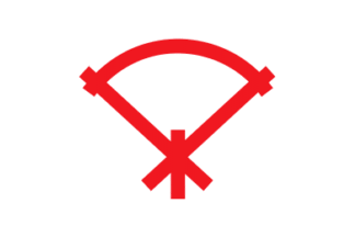 The city emblem was adopted on Apr 1st 1948 but there is no flag law. The white flag has a red city emblem in the center. The city emblem is a stylized katakana サノ Sano of Izumisano in a form of a folding-fan. It represents an image of the city making a leap forward.