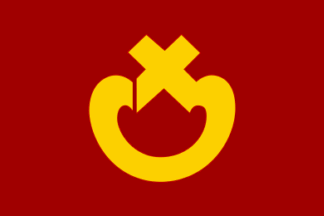 The flag of former town of Chiyoda was redish with mark. The town is, from 2006, part of the city of Kanzaki.