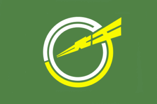 The flag of former city of Okuchi was green with symbol. The city is now, from 2008, part of city of Isa.