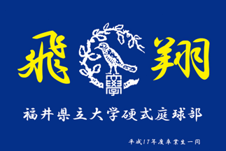 Hardball tennis club; The club flag has blue background with a white university emblem and horizontally written