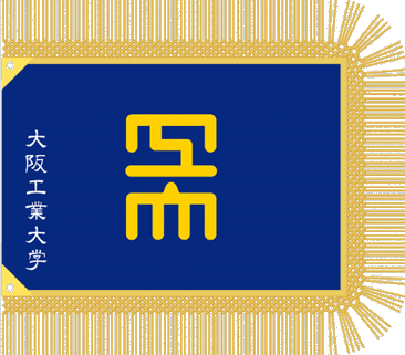 Located in Osaka City Osaka Prefecture and established in 1949. The embroidered ceremonial flag has blue background with a gold emblem and vertically written in silver kanji institute name in gold fringe. The flag is blue with the kanji word "工大"=Institute of Technology in gold in the center. The flag currently in use was made in 1962, and is used at various ceremonies held at the school, including the entrance oath ceremony and degree conferment ceremony.