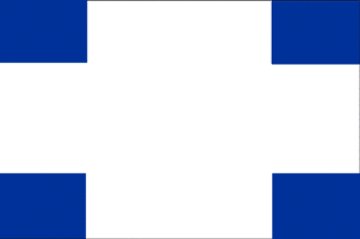 The white flag with 4 blue rectangles at each corner is a flag of pilot call according to a Japanese flag book published in 1872.