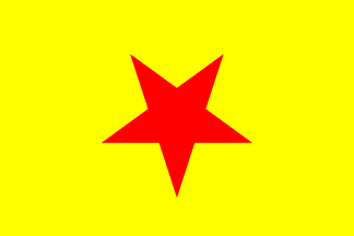 The flag is a yellow field with a red star. It was adopted in 2003.