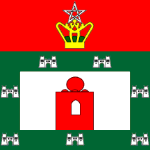 Keywords: marrakech | dagger | bordure: castles | mosque (red) | chequy (white-blue) | swallowtail | doubt | imaginary |