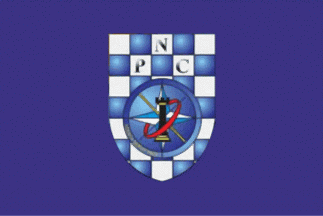 Its flag is blue with its crest in the center of the flag. It is a yellow-bordered shield with