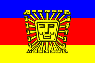 Quarterly divided red (top, bottom) and white (hoist, fly), two blue concentric