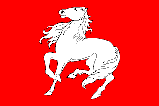 The Coat of Arms is "gules a horse argent"; the flag was a banner of arms. Ralf