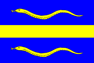 proportions 2:1:2, with on the blue stripes a yellow meandering (Dutch:
