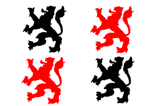 On 16 Jul 1962 the present flag was adopted by municipal resolution. Description: white with four lions of black and red.
