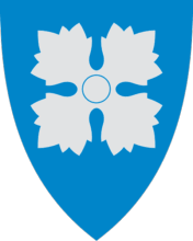 Blazon: På blå grunn eit sølv firblad. In English: Azure a quatrefoil argent.