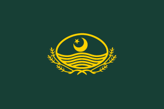 A variant of the flag is seen at https://www.dawn.com/news/1685612. This variant depicts the normal provincial emblem in gold, over a green field; noting the fact it includes the provincial name in Urdu.