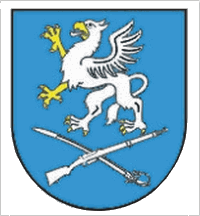 "Arms: on the light-blue shield there is a silver griffin with the golden