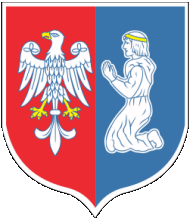 On the blue field an image of Prince Casimir I the Restorer, kneeling