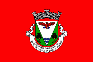It is a typical Portuguese communal flag, with the coat of arms centred on a plain red field.