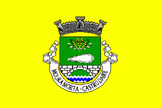 Mural crown Argent with three visible towers (village rank) and white scroll reading in black upper case serifed letters "MOURA MORTA - CASTRO DAIRE".