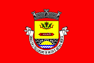 It is a typical Portuguese communal flag with the coat of arms centred on a plain red field.