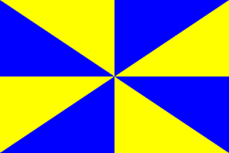 The plain flags have been gyronny of eight of yellow and blue (see left image above) or erroneously gyronny of eight of blue and yellow (see right image above).