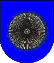 Shield Azure a sea urchin Argent garnished Sable. Mural crown Argent with four visible towers (town rank) and white scroll with inscription in black initials: "ERICEIRA".