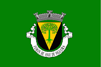 Shield Or chausse Sable with fig tree eradicated Vert fruited Purpure. Mural crown Argent with three visible towers (village rank) and white scroll with inscription in black initials "FOROS DE VALE DE FIGUEIRA".