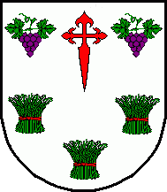 The region belonged to the Order of St. James, represented by its cross. The grapevines are symbolizing the rural character, especially viticulture. The plough also is symbolizing agriculture. It is also an attribute of St. Isidor, the local patron saint.