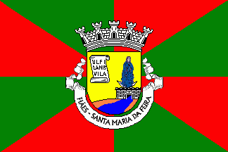 The name "Fiães" was derived from "Ulfilanis" (Ulfilanis - Ufilanis - Ufianis - Ufiães - Fiães). The scroll within shield refers to ãULFILANIS VILAã, which means ãtown of Wulfilasã. Wulfilas (311(?) - 383) was a West Gothic bishop from the tribe of T(h)ervings, who settled in the Lower Danubia Region in the 4th century. He died in 383. He was famous for his translation of the Holy Bible to the Gothic language and he thus also created a Gothic literary language. He owned a great estate in the territory of the nowadays town. St. Mary of Fiães is the local patron saint. Green and red are the Portuguese colours, in the gyronny pattern here obviously not considered to be national symbols.
