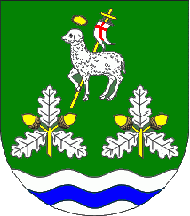 Shield Vert, a base wavy of Argent and Azure, in chief a Paschal Lamb Argent nimbes Or carrying a labarum ( a banner) Argent with a throughout cross Gules, fixed on a cross-shaped pole Or, between two oak twigs, each having three leaves Argent set triangular and two acorns Or. Mural crown Argent with three visible towers (village rank) and white scroll with inscription in black initials: "REBOREDA".