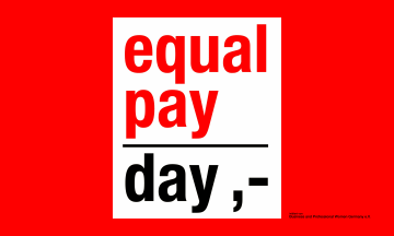 Several flags have made appearances at "Equal Pay" rallies, including a colorful flag with a female gender sign. At a rally in front of the Brandenburg Gate on 21 March 2013 in Berlin, Germany, German Family Minister Manuela Schwesig spoke to both men and women about equal pay for women that day.