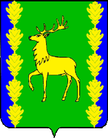 folded in an indirect cross, stars and heraldically to the left - golden oak trefoil with two acorns. The emblem is crowned with a three-pronged gold crown of a standard set for rural settlements. The image of the coat of arms without a crown is allowed.