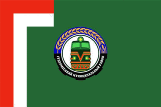 image by Tomislav Šipek, 7 December 2021The flag of Gudermessky District can be seen at http://www.vexillographia.ru/russia/texts/2020_gudermes.pdf. It is green with a red-white stripe along the hoist edge and extending a short distance along the top; the seal in the center.