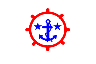 Shipping Corp. of Saudi Arabia, Jeddah – white flag, red ship's wheel, charged with two 5-pointed stars and a standing foul