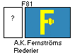 This company ceased as a shipowner in 1946 with Erik Fernström re-entering shipping with the formation of Fernströms Rederi A/S in 1954 although he seems to have registered his ships under companies incorporating the initials "A.K.". He sold out in 1968 though the company continued until the last ship was sold at the end of 1976. A similar flag is shown by Stewart 1963 under A.K. Fernströms Rederi only the letter is erect and the stars and "waves" are white. The version also shows on a cap badge at Telia.com although the exact colour of the stars and waves is not clear.