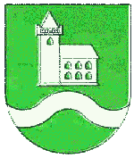 On a green field silver Virgin Mary with a child in her arms - both crowned, dexter (to the left) a silver church.