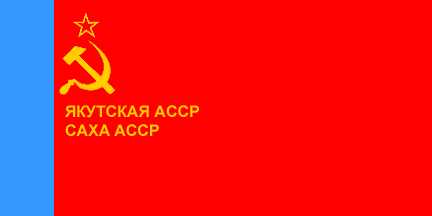 9 Mar 1937 – 1939 flag Changed to Russian script in 1939. It is interesting that according to constitution of 1937 the name of ASSR on the flag was only in Yakut. Until 1939 Yakuts lacked letter F, so RSFSR was RSPSR (please see Yakut arms of 1938).