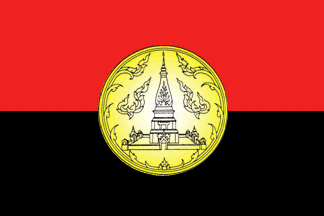According to the Thai Ministry of Interior in 2000, the flag of Nakhon Pathom province is red over black with a monochrome representation of the provincial seal on a golden background.