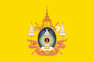 The personal standard of H.M. King Bhumipol Adulyadej (Rama IX) is a dark yellow flag with his emblem.
