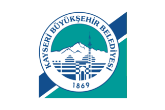 The emblem features the snowy Mount Erciyes (3,916 m), Kayseri's landmark. "Büyükşehir Belediyesi" means "Metropolitan Municipality".