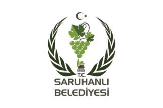 The flag of Saruhanlı (photo) is white with the municipality's emblem. "T.C." stands for "Türkiye Cumhuriyeti", "Republic of Turkey"; "Belediyesi" means "Municipality".