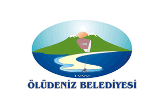 The flag of Ölüdeniz was white with the municipality's emblem. "Belediyesi" means "Municipality".