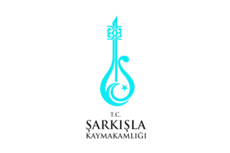 The flag of Şarkışla is white with the municipality's emblem. "Belediyesi" means "Municipality".