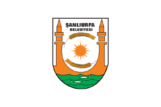 The former flag of Şanlıurfa (photo) was white with the municipality's emblem (image) in the middle. "Belediyesi" means "Municipality".