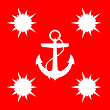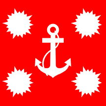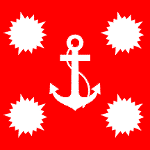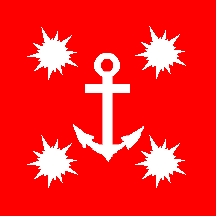 The flag of the Commander of a naval base is a red square flag with a white fouled anchor [Album des Pavillons [pay00]].