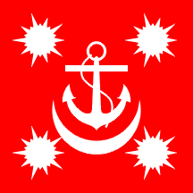 The flag of a Captain (Albay, sometimes mistranslated as "Colonel" because both ranks are known as Albay in the Turkish language) is a square red flag with a white fouled anchor, unless appointed as a Commodore [website of the Turkish General Staff].