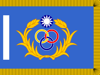 The name of the unit is written in black letters on the white strip, and the badge of the unit is on the small yellow flag.