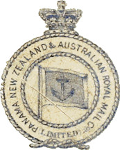 The cap badge almost certainly relates to the Panama, New Zealand & Australia Royal Mail Steam Packet Company. I found the [following] information and it includes the company crest from a dinner plate!