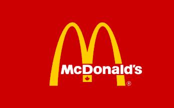 McDonald's fly a red field with the golden arches and the white name across the center, often en masse on their restaurants.