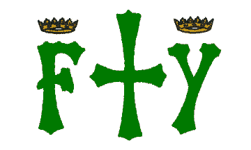 In the records written in his logbook, he says that October 12th, when they arrived at San Salvador (of course, he didn't know at the time where he was exactly), they landed in small boats from the 3 ships. Cristopher Columbus took from the Santa María the Royal Flag, and the captains of the Pinta and the Niña, a Captain's flag each. About this last flag, we know it was a capitana flag (a Spanish military term) for the expedition. It was used to distinguish the ships under the command of Cristopher Columbus (3 ships in this trip). It was not a personal/private flag belonging to him, but a sign of the fleet under his authority (each ship having a captain with this flag). It could have been swallowtailed, but only oral transmission remains of the flag. The symbols it contains (the "F" for King Fernando and the "Y" for Queen Isabel, crowned, and separated by a cross) are engraved at his burial mound in the Cathedral of Seville, but no flag shape is described.