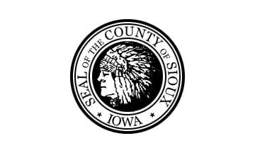 Archived copies of the pages about Sioux County are still at web.archive.org/web/*/www.iowacounties.org/County+Info/History+Pages/sioux.htm and web.archive.org/web/*/www.iowacounties.org/County+Info/Flags/Sioux.htm. It is a ~3:5 plain light (white?) flag with a large seal like emblem centered on it. The seal shows a black (?) central disc with the likeness of a Native American seen in profile with archetypal feathered headgear and triple ringed