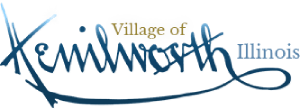 Kenilworth village script logo, and blue stripes bordering the top and bottom to